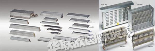 ①ROP型功率電阻器組,由纏繞有電阻絲的不銹鋼框架組成,成組組裝并串聯(lián)或并聯(lián)(取決于最終歐姆值),安裝并固定在鍍鋅鋼制外殼內(nèi)/底部和側(cè)面均開有散熱縫。