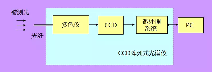 陣列掃描式光譜儀通常由多色儀、陣列式光電探測器、數據處理系統等幾部分組成,其中多色儀與單色儀最大的不同在于沒有機械運動部件,保證了儀器長久運行的穩定性和測量重復性,在結構上也可以設計得非常小巧緊湊。陣列探測器采用全光譜同步探測方式,具有檢測速度快、靈敏度高、光譜響應寬、動態范圍大、重復性好、分辨率高等特點。