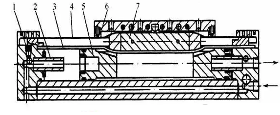 l-節流閥,2-緩沖柱塞,3-密封帶,4-防塵不銹鋼帶,5-活塞,6-滑塊,7-活塞架