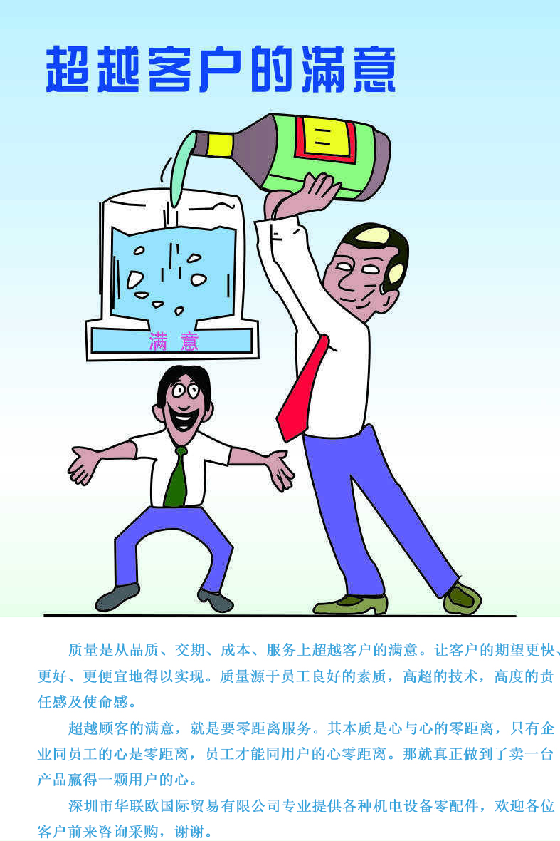 工作效率和專業、專注技術一直是深圳市華聯歐國際貿易有限公司的立身之本,其他一切都是錦上添花。我們是一家負責任的公司,對任何一個客戶都是一視同仁的,每位客戶的咨詢我們都會用心去接待,對待每次客戶詢價,我們都是不厭其煩。熱情,快速回復報價,一直是我們硬性要求,如果對我公司服務不滿意,歡迎向我們公司投訴反饋,郵箱:info@hlo-trade.com。